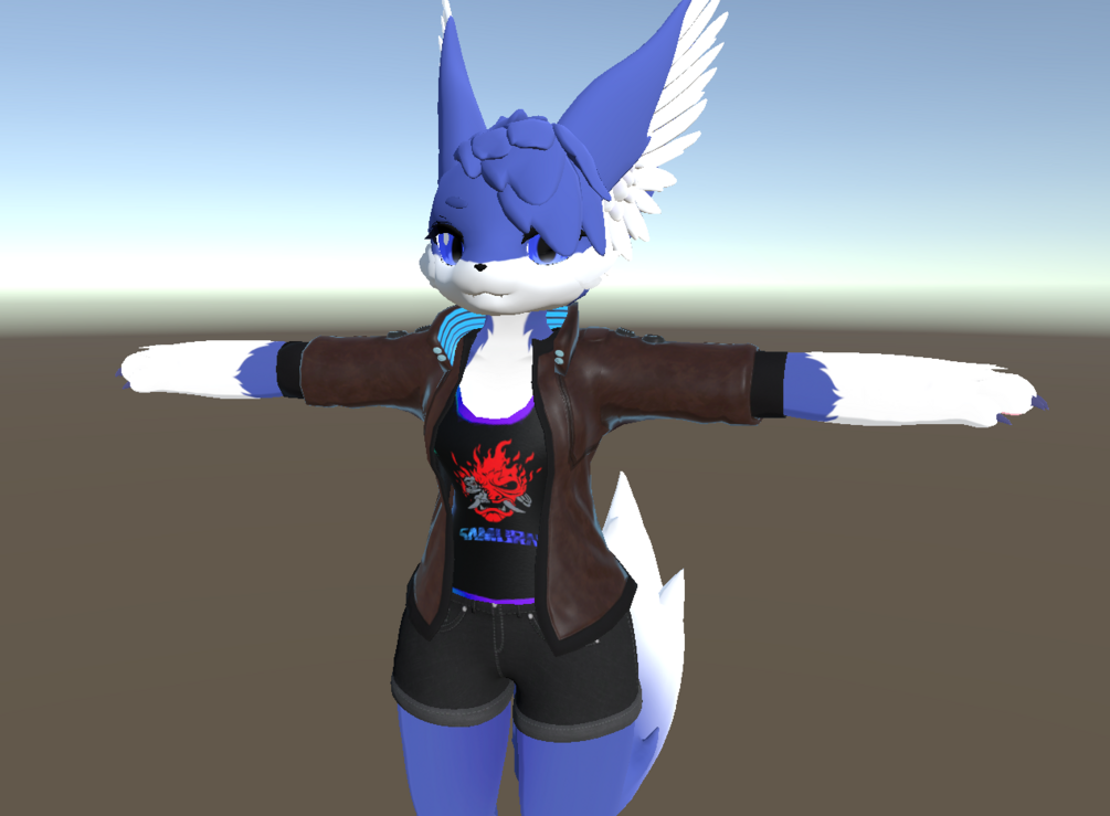 Get this cyberpunk jacket and tank top inspired by the game Cyberpunk 2077 for Nico the Floof. Both are modeled from scratch and made to fit the Nico the Floof base. Includes blendshapes to fit the fem chest. The unity material set up for the jacket has a toggleable visualizer effect using Audiolink. Jacket and tank top are separate and can be toggled individually and fit seamlessly with the shorts the come with the model.
